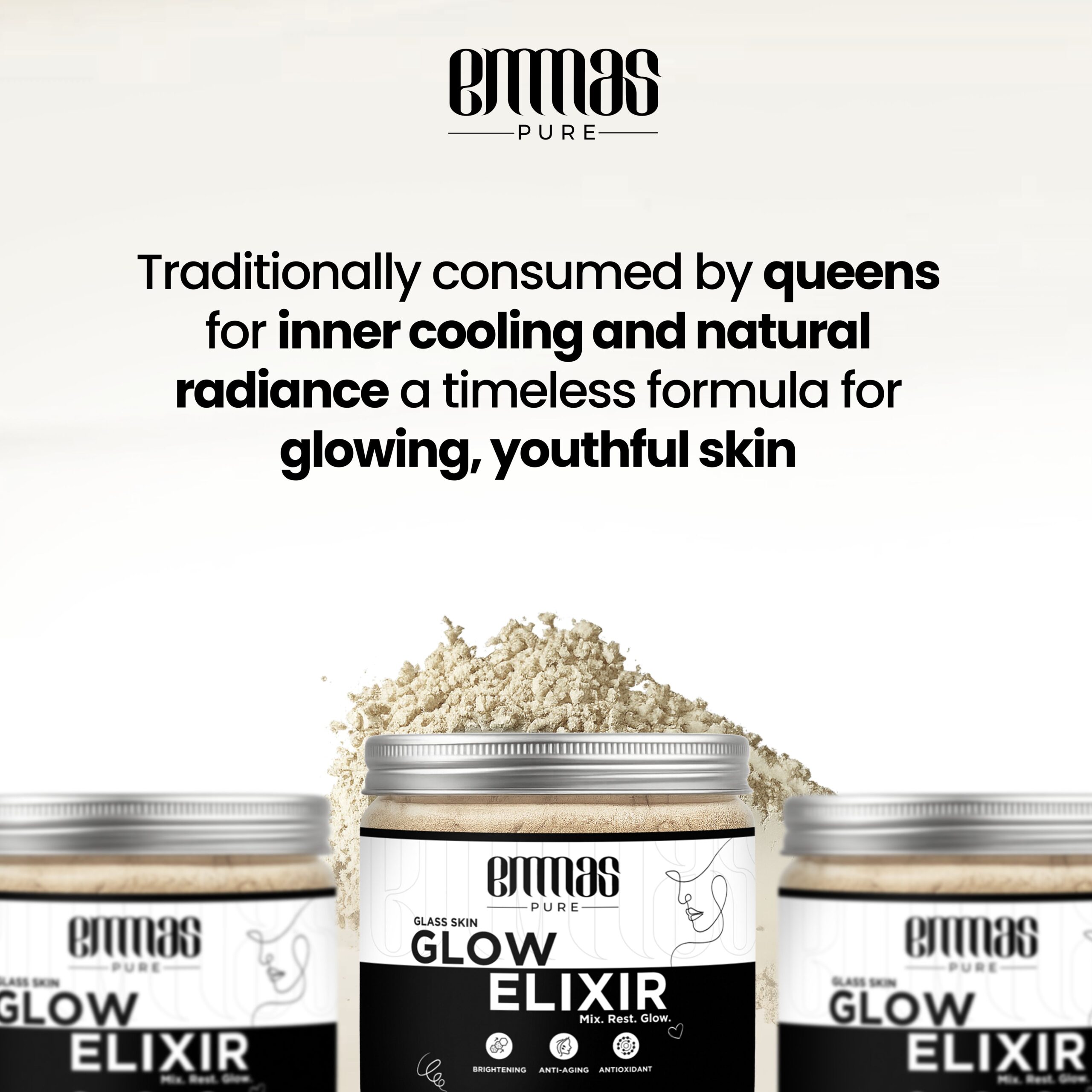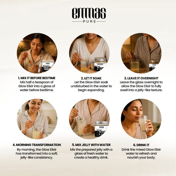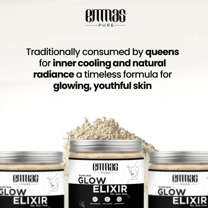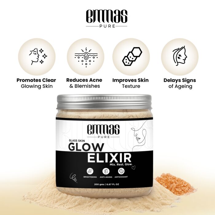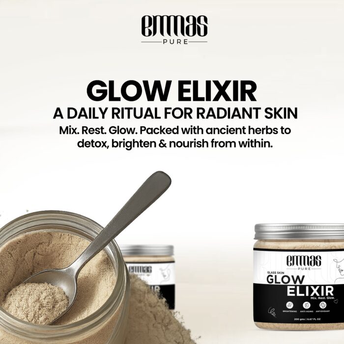 Illuminate your skin from within with Emmas Pure Glow Elixir. This advanced herbal powder is a unique, ingestible beauty supplement designed to promote a brighter, more even-toned, and radiant complexion. The carefully selected blend of Ayurvedic herbs works synergistically to detoxify the body, purify the blood, and combat the internal factors that can lead to dullness and hyperpigmentation. Regular consumption of this elixir can help to reduce the appearance of dark spots, even out skin tone, and enhance your skin’s natural luminosity. Made in India and free from parabens and artificial additives, it is a holistic and natural approach to achieving a healthy, lasting glow.