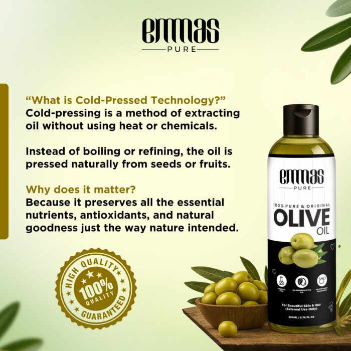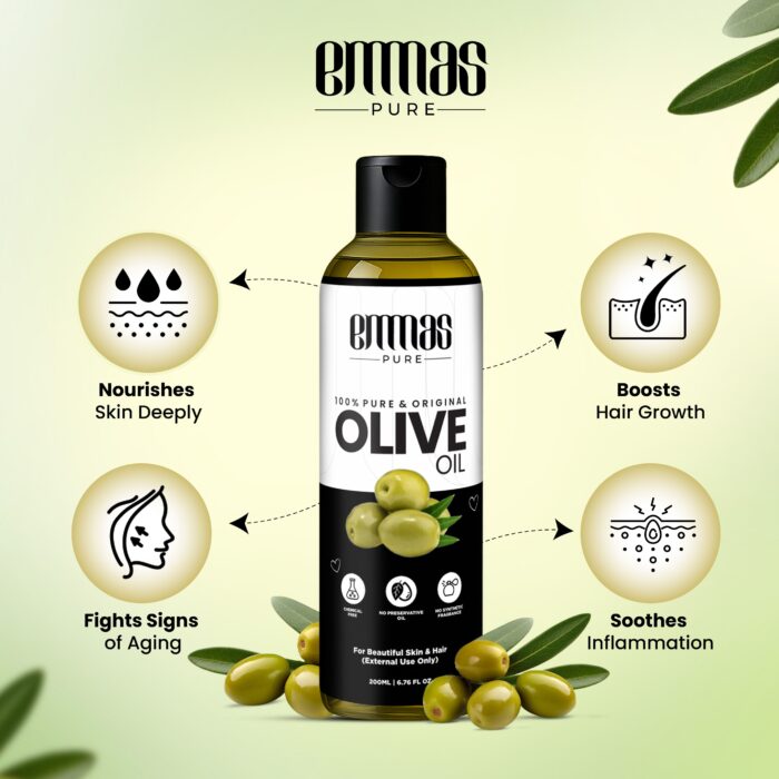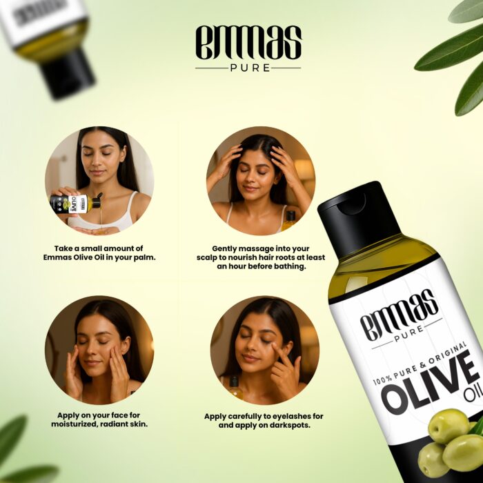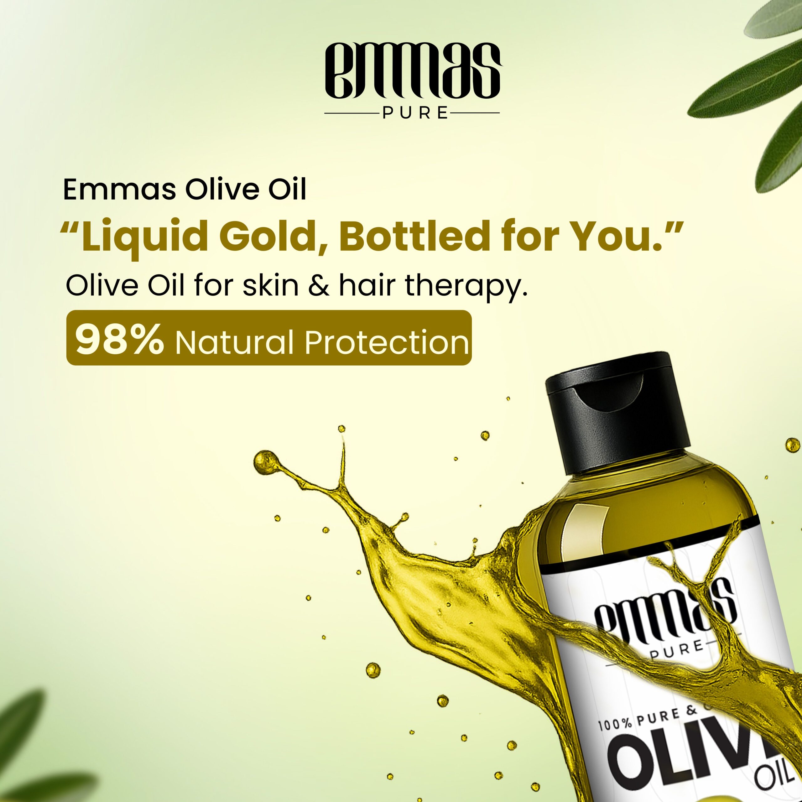 Indulge in the time-tested beauty benefits of Emmas Pure Olive Oil. This 100% cold-pressed, extra virgin oil is a multi-purpose wonder, perfect for all your hair and skin care needs. Use it as a deep conditioning hair treatment to strengthen strands and add shine, as a daily moisturizer to soften and hydrate dry skin, or as a luxurious massage oil. Its natural, hexane-free formula is also excellent for promoting a healthy, well-groomed beard. Made in India, this pure and nourishing oil is a simple, effective, and all-natural addition to your daily routine.